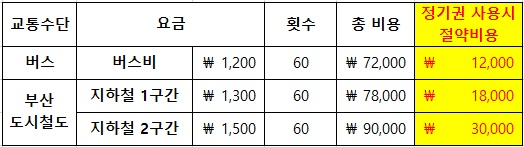 정기권 안쓰고 지하철이나 버스 탄다고 생각하면 지하철 정기권 6만원보다 더 들게된다!