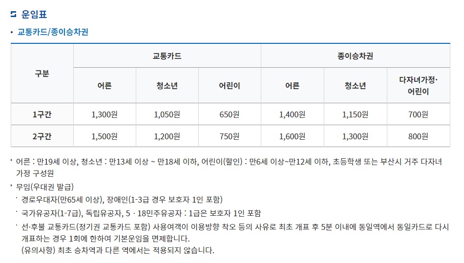 도시철도 운임 > 운임 정보 > 이용안내 > 부산교통공사