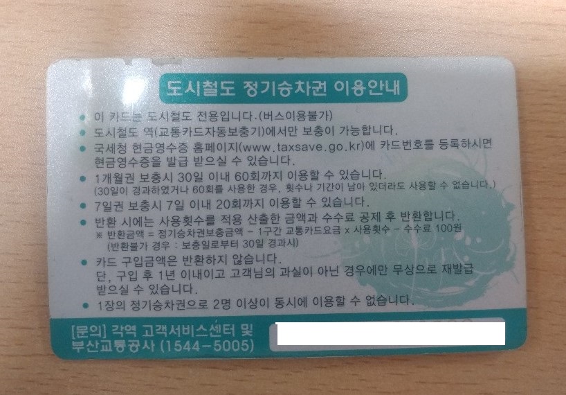 현재까지 부산 휴메트로 1개월 정기승차권을 쓰고 있는데 이 것에 대하여 모르는 사람들이 꽤 많더라.