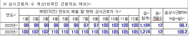 | ① 2022년 평균 상시 근로자 수(기준) |