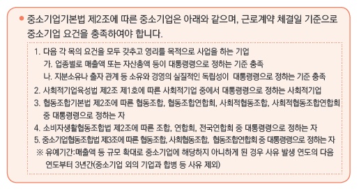 1) 중소기업법 제2조에 따른 중소기업*에 재직 중