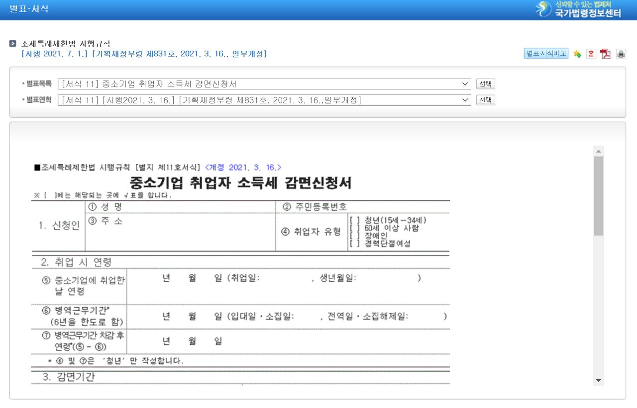 국세청 > 중소기업 청년 소득세 감면 신청서 준비