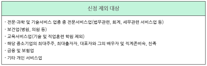 **임원(고용보험 가입과 관계없이), 최대주주 또는 최대출자자와 그 배우자 및 직계존비속, 일용근로자, 건강보험료(직장가입자) 납부이력이 없는 자는 제외됨.
