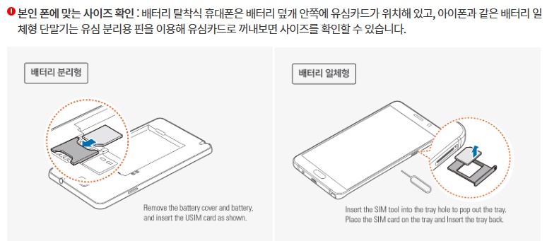 사용할 휴대폰에 따라 유심종류 다르므로 꼭 확인할 것!