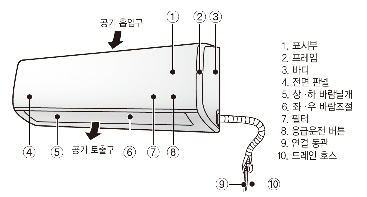 에어컨 청소에 대해 이야기하기 전에, 혼동을 막기 위해 에어컨 매뉴얼부터 보여 드립니다. 아래부터는 매뉴얼에 기재된 용어로 통일해서 설명해 볼게요.