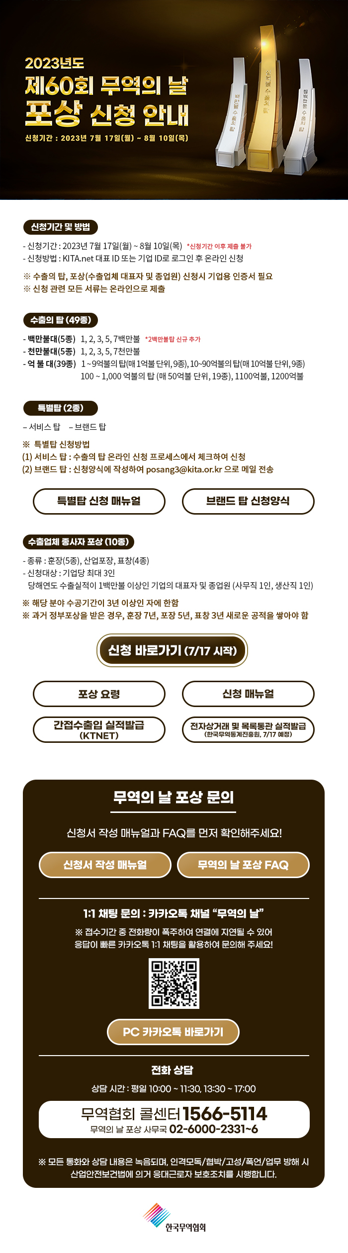 2023년도 무역의 날 수출의 탑 및 포상 신청 안내-한국무역협회 (kita.net)
