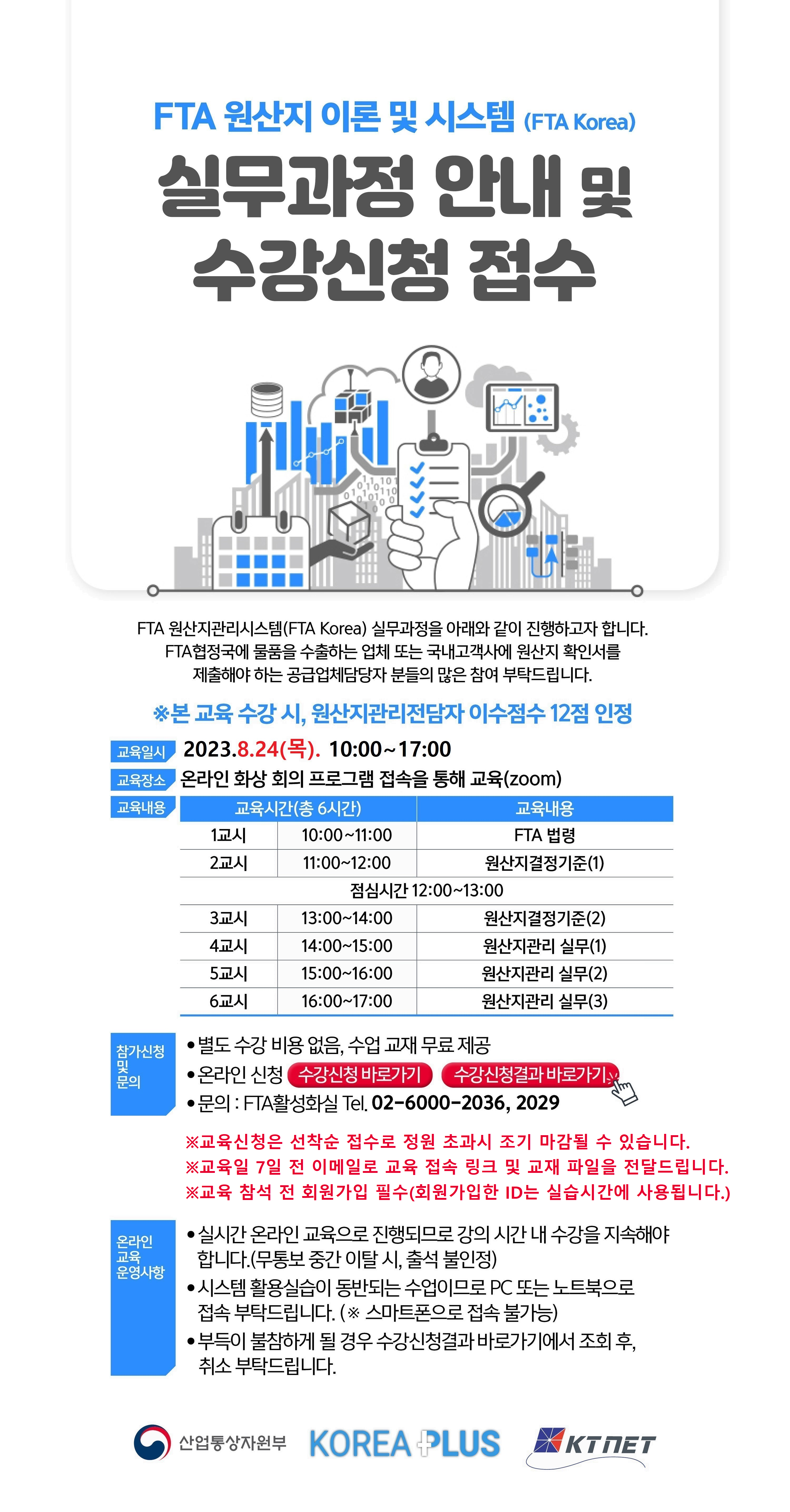 유트레이드허브 포털에서 FTA 원산지시스템 실무과정을 진행한다.