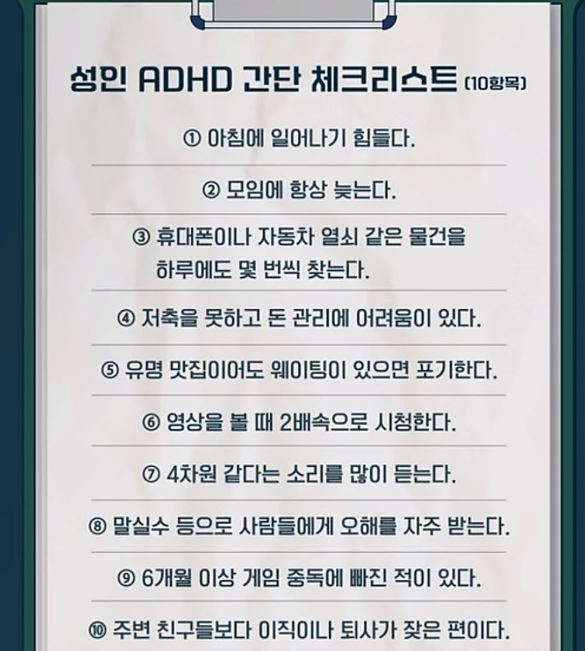 아래는 청소년adhd검사
