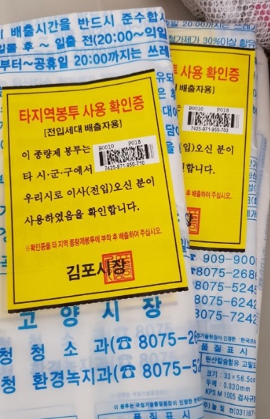 다른 곳으로 이사가며 남은 종량제 봉투 처치하기 곤란할 때가 있다.