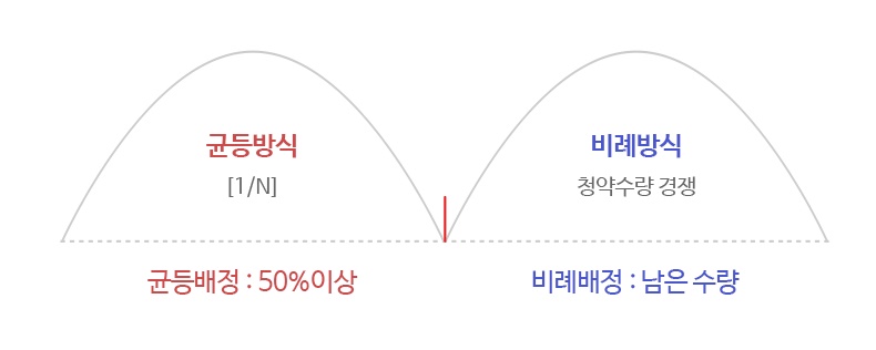 1) 균등배정방식 : 균등하게 배정한다. 청약한 사람들에게 모두 골고루 나누주는 것.