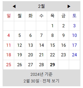 윤일 또는 윤달이 든 해를 윤년이라고 한다. 올해 2024년은 윤일이 든 윤년이다.