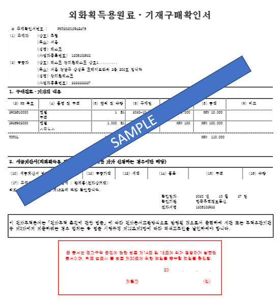 - 구매확인서를 uTradeHub 홈페이지를 통하여 수신받는 경우는 부가기능으로 제공되고 있어 날인이 필요한 경우 적색고무인을 포함하여 바로 출력이 가능합니다.