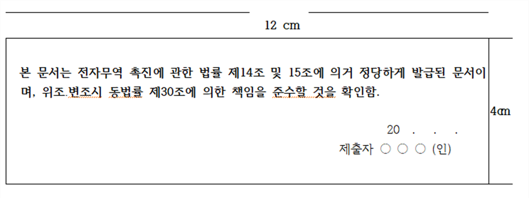 - 네, 전자무역촉진에 관한 법률상에 규정이 되어 있으며 아래 규격을 참고하여 주시기 바랍니다. (시행규정 별표4)
