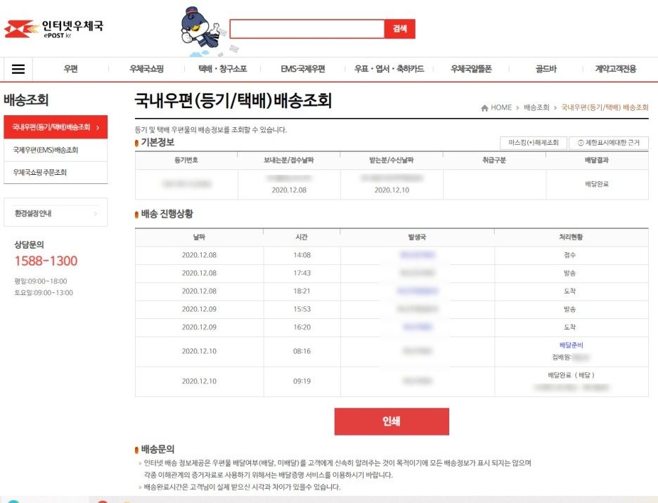 국내우편(등기/택배) 배송조회-배송조회 (epost.go.kr)