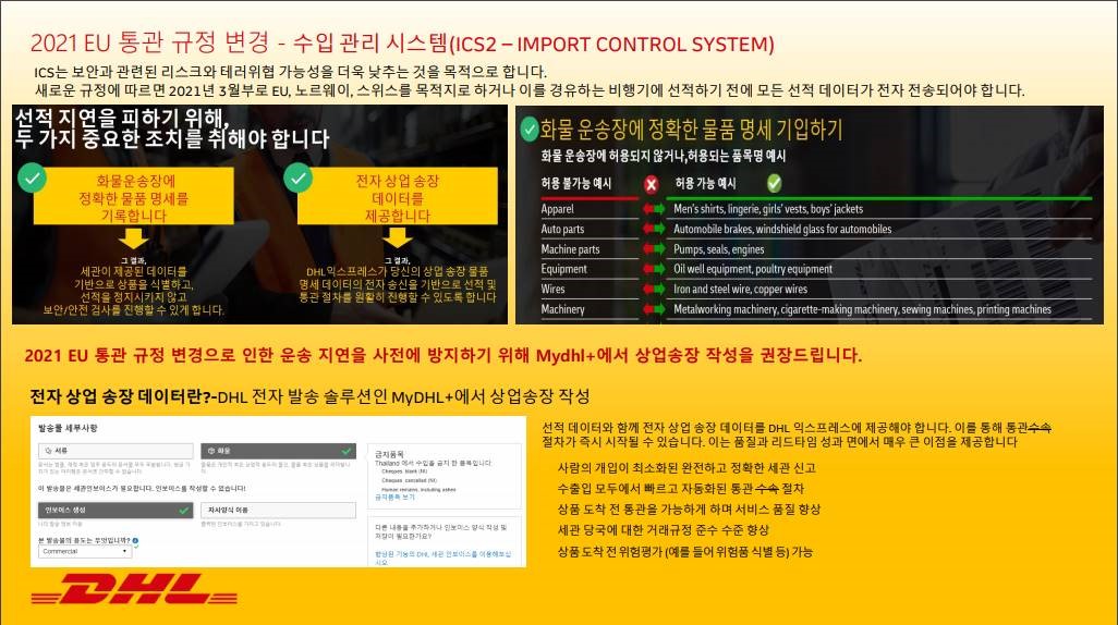2021년 3월부터 DHL에서 ICS2 (Import Control System)이라는 수입관리시스템을 도입한다.