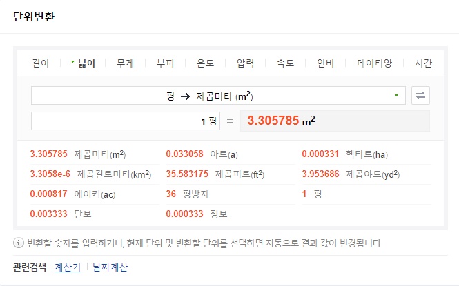 평수 계산 : 네이버 통합검색