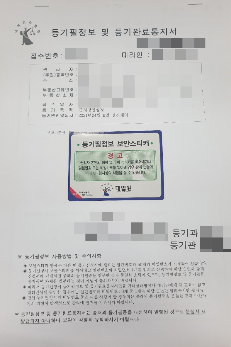 2) 은행일 경우 : 은행 담당 법무사가 상주하고 있는 경우가 많으므로 은행에서 근저당 설정을 알아서 하게 됨.